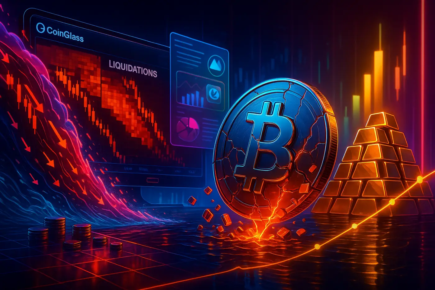 A sweeping $1.8 billion liquidation wave has hit Bitcoin traders just as gold pushes to fresh highs, reigniting debate over Bitcoin’s role as “digital gold.” Data show about $1.65 billion of the liquidations were long positions, and roughly 407,000 traders were wiped out as Bitcoin slid below $112,000. CoinGlass liquidation charts captured the scale of the flush across long and short bets.