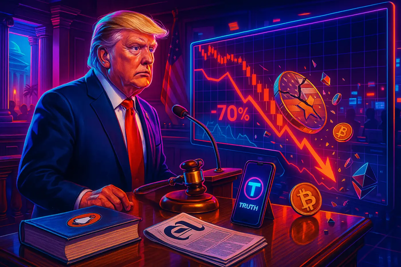 - Market impact: Political-themed token plunged ~70% after a January 2025 launch, highlighting crypto exposure to reputational risk